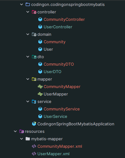 // 작업 순서 : sql 이용해 table 생성 -> 도메인 생성 -> dto -> mapper -> service -> controller